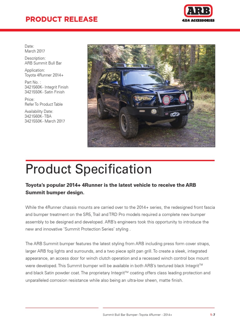 The largest 4runner community in the world. The all new summit bumper continues the arb tradition of pioneering innovation and our relentless pursuit on quality. Page 4 of 17.