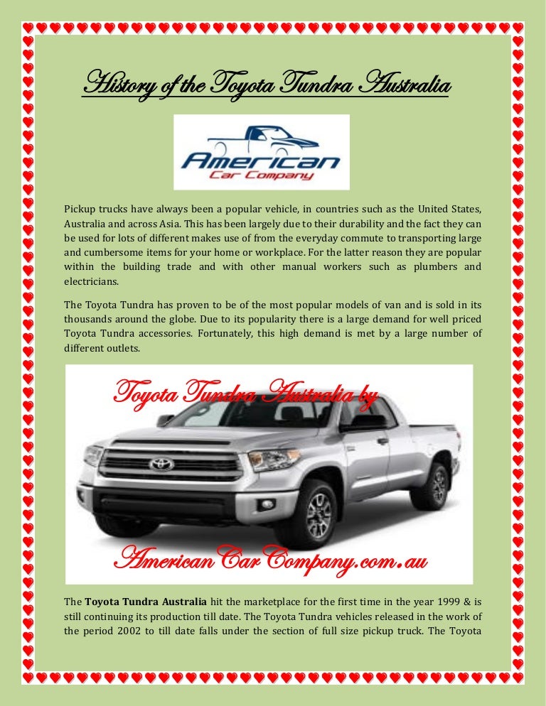 The toyota tundra has a grey import presence in several countries that include japan china australia the philippines cambodia switzerland the middle east and sweden. Search for new used toyota tundra cars for sale in australia. 65 kilometres on the dial.