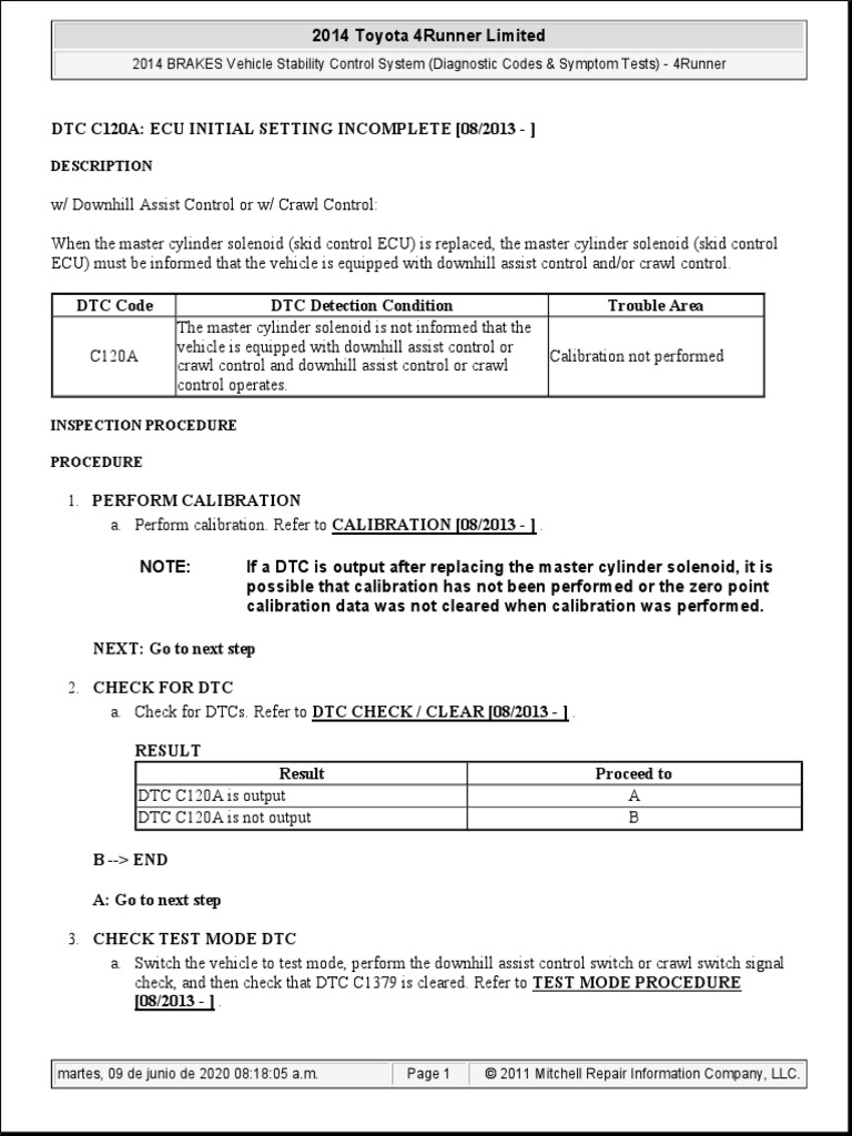 Toyota 4runner Calibration Vehicle Stability Control System For Hydraulic Brake Booster Service Manual